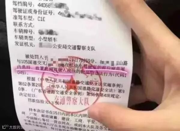 仔细看看,罚单的处罚原因是车内悬挂放置了装饰物,每张罚款50元!