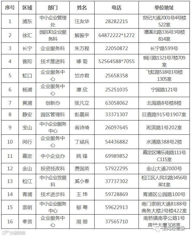 (三)区中小企业主管部门(科经委、经委)联系方式