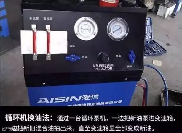 变速箱油的更换周期,比发动机润滑油的更换周期长的多。正常情况下,6到8万公里更换,当然不同厂家会有所不同。换油时,最好使用厂家指定变速箱油。下图是采用循环机的变速箱换油操作方法。