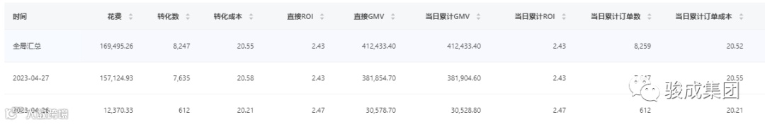 结合本身产品应季的特点,产品重击用户的痛点,转化率和账户消耗呈正比例上升。账户成本下降的趋势表现良好。从素材板块入手做优化提量