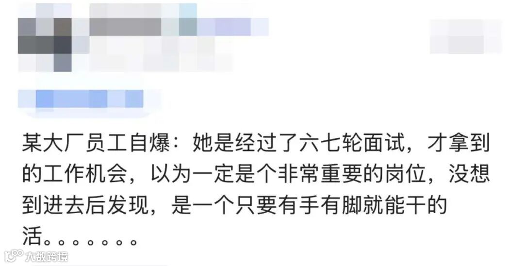 进去发现自己干的活,培训三天就能上手,跟隔壁外包干的事儿没啥区别。