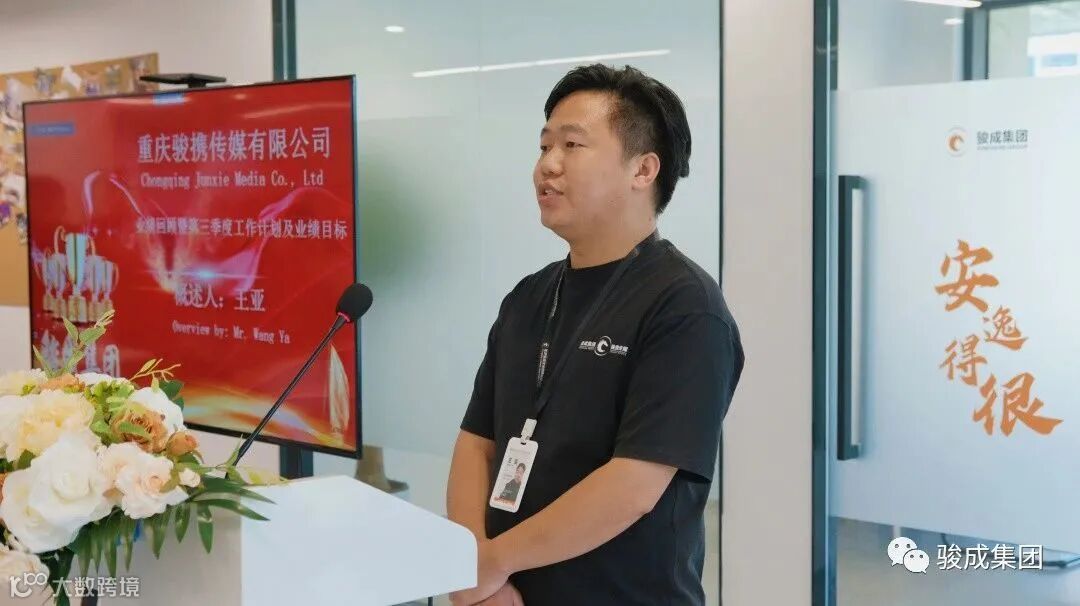 重庆骏携传媒有限公司总经理——王亚:“由于市场环境的影响,Q2季度相对于Q1季度来说面临了巨大的挑战与瓶颈,但在小伙伴们坚持不懈的努力下和各兄弟公司、各部门的支持帮助下完成了Q2季度的业绩目标,Q3季度将继续落实年度任务与目标”。