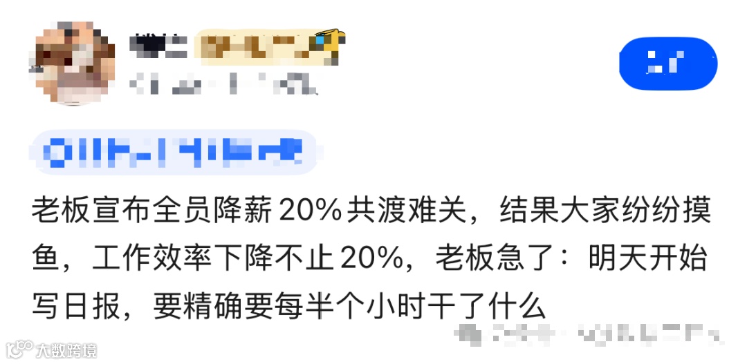 老板宣布全员降薪20%,理由还是那套熟悉的配方:"公司遇到困难了,大家一起共渡难关。"结果员工也很配合,集体开启摸鱼模式,工作效率直接腰斩。
