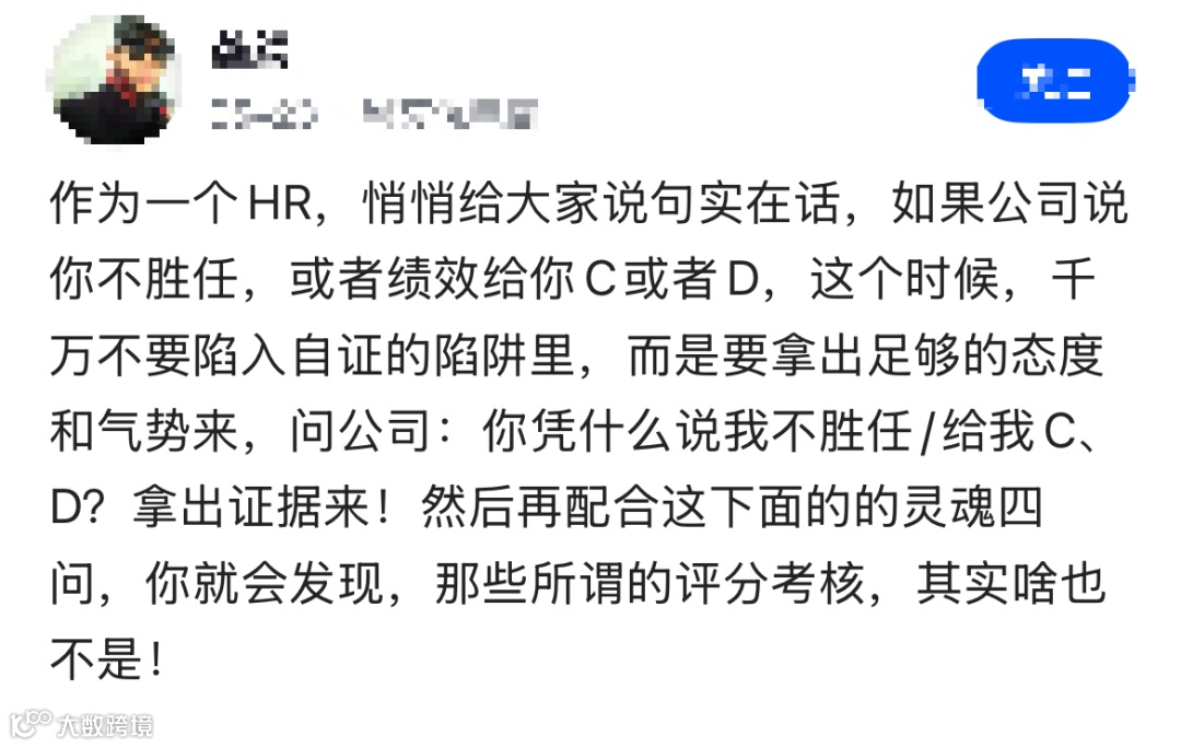 在某职场社区看到一个绩效考核相关的帖子,大意是: