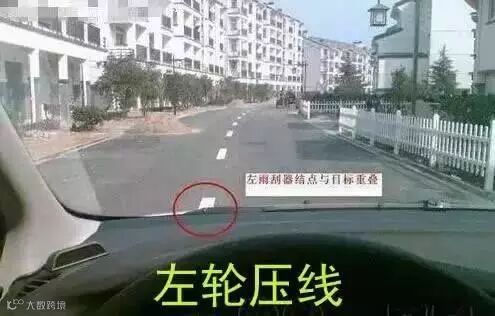 当右雨刮器结点和路边重合时,方向稍向左拉,就可以达到离路边10厘米靠边停车的效果