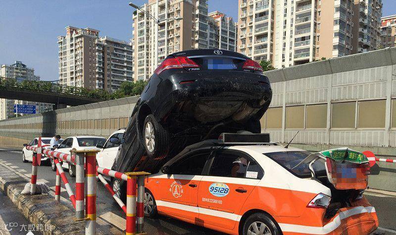 “如果是一辆货车,我连命都没了!”出租车司机是一名中年的男子,事故发生了半个多小时,他还惊魂未定。他告诉记者,自己当时车上载着乘客,从城东方向过来,准备到泉州市区云鹿路。开到坪山路快要下坡进入隧道口时,突然发生了事故。“是后面那部车撞的我,我才撞上别人的。”出租车司机说,他也不知道为什么,前面的车就跑到了自己的车顶上。幸好司机和坐在后座的乘客都没有大碍,仅乘客下巴受了点轻伤。以上说法暂未得到警方证实,事故原因正在调查中。