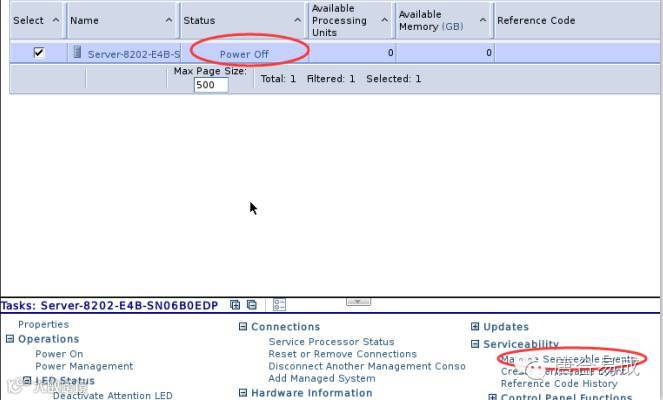 5、当状态变为“Power off”,登录manage serviceable event 查看报错