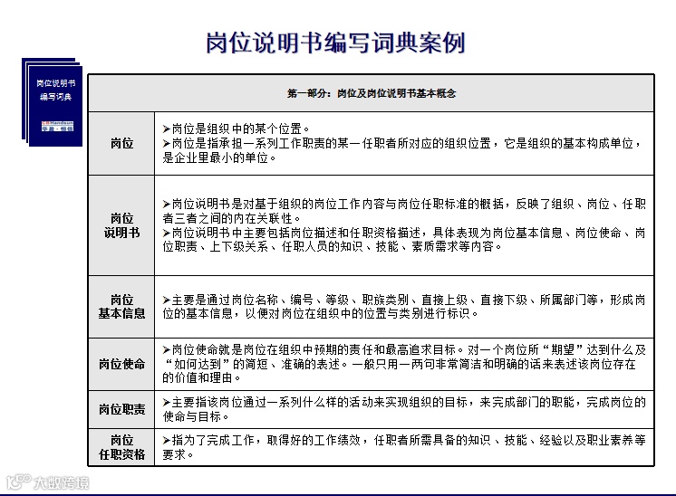 通过与各部门负责人的深入沟通,明确每个岗位的核心需求之后,接下来对外就要展示出清晰的岗位介绍,以便于候选人也能准确地理解岗位的核心要求。这份《岗位说明书编写实操指南》就能帮助HR系统地理解和掌握岗位说明书的技巧与流程。