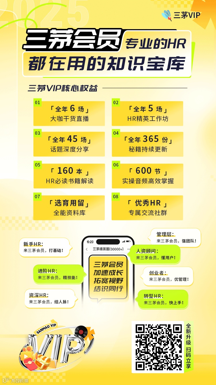 基于这些问题,我们从2019年上线VIP会员功能,从最初的0元听好书、0元听好课,发展成如今多达11项会员权益的三茅核心产品,同时也积累了50000+HR在这里交流学习。