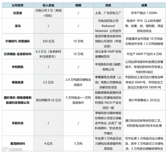 多家能源龙头企业纷纷布局动力电池回收业务