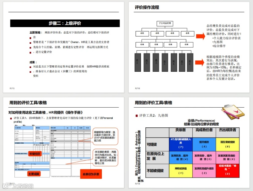 年底进行盘点人才数量和质量,哪些员工可能不能胜任公司岗位,需要进行淘汰或替换;哪些员工属于正常绩效,需要继续培养和观察;哪些员工属于关键人才,需要更多关注,做好保留与激励。