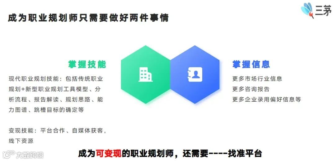 毕竟成为一名职业生涯规划师,一方面可以帮助有需要的人答疑解惑,另一方面还可以为自己增加一份时间自由、收入颇丰的副业,何乐而不为呢。