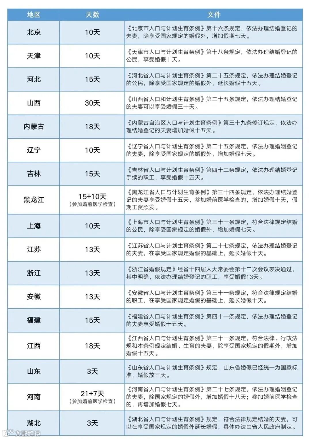 三、全国各地婚假天数