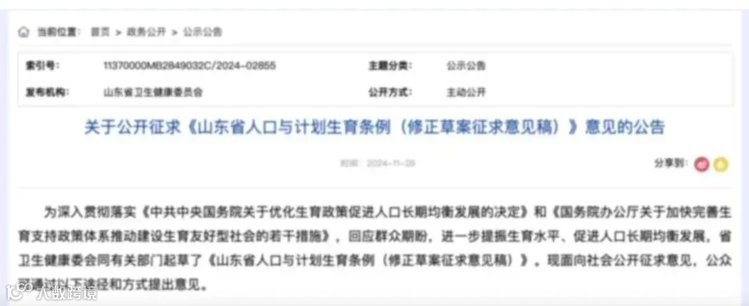 11月25日,山东省卫生健康委员会发布关于公开征求《山东省人口与计划生育条例(修正草案征求意见稿)》意见的公告,提出将延长婚假: