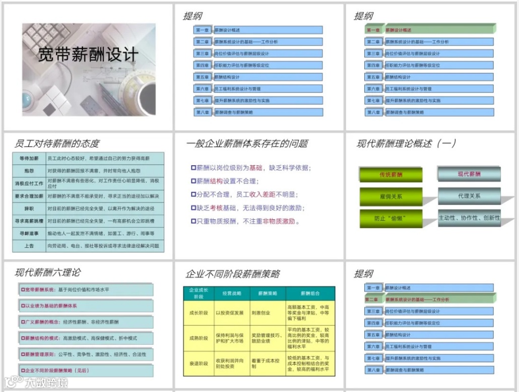 通过这份资料包,你可以系统地掌握薪酬体系设计的基本原则、薪酬结构的设计方法,同时参考名企薪酬体系全套设计方案,拿来即用的薪酬方案,在真实的工作场景中不断积累经验,逐渐知道如何从成本、利润、人才培养等方面开始做薪酬绩效项目。