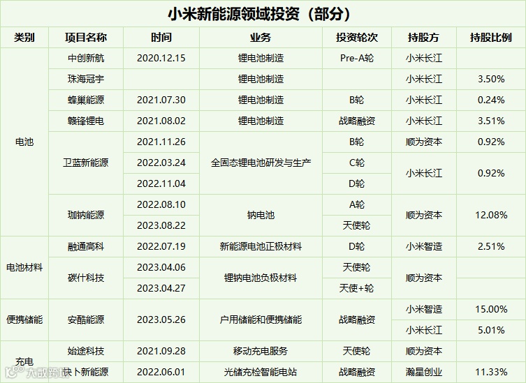 在进入新能源汽车赛道之后,小米就开始了全面的碳中和相关投资布局。