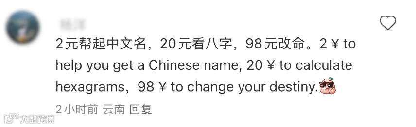 1.有人给老外起中文名,看八字: