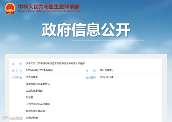 6月5日,生态环境部会同国家发改委、工信部、财政部、人力资源社会保障部、住建部、交通运输部、商务部、中国人民银行、国务院国资委、海关总署、市场监管总局、金融监管总局、中国证监会、国家数据局制定并印发《关于建立碳足迹管理体系的实施方案》(以下简称《方案》)。