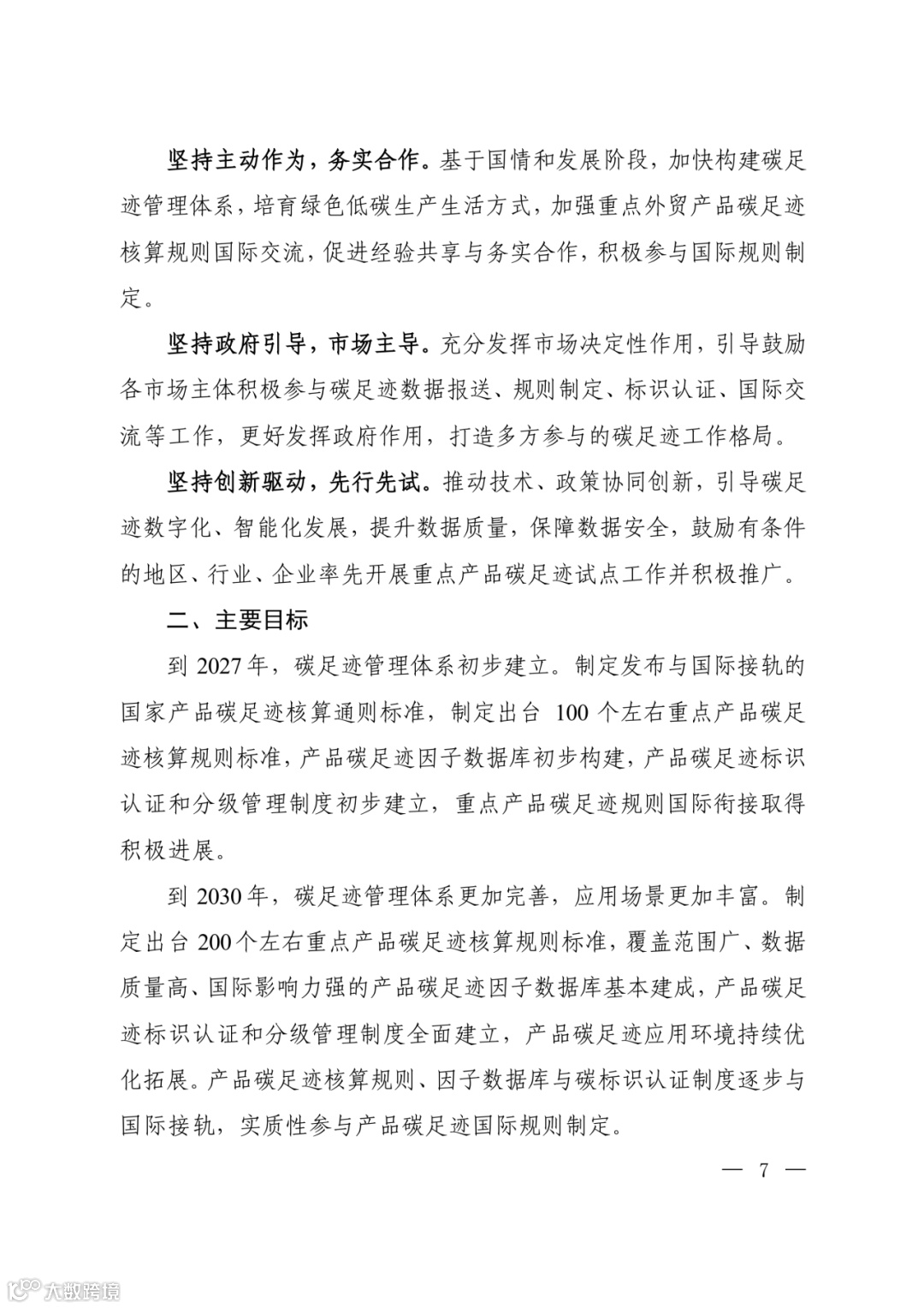 《方案》提出,目标到2027年,碳足迹管理体系初步建立。制定发布与国际接轨的国家产品碳足迹核算通则标准,制定出台100个左右重点产品碳足迹核算规则标准,产品碳足迹因子数据库初步构建,产品碳足迹标识认证和分级管理制度初步建立,重点产品碳足迹规则国际衔接取得积极进展。到2030年,碳足迹管理体系更加完善,应用场景更加丰富。制定出台200个左右重点产品碳足迹核算规则标准,覆盖范围广、数据质量高、国际影响力强的产品碳足迹因子数据库基本建成,产品碳足迹标识认证和分级管理制度全面建立,产品碳足迹应用环境持续优化拓展。产品碳足迹核算规则、因子数据库与碳标识认证制度逐步与国际接轨,实质性参与产品碳足迹国际规则制定。《方案》提出四项主要任务,包括建立健全碳足迹管理体系、构建多方参与的碳足迹工作格局、推动产品碳足迹规则国际互信、持续加强产品碳足迹能力建设等,并分解成22项具体工作。