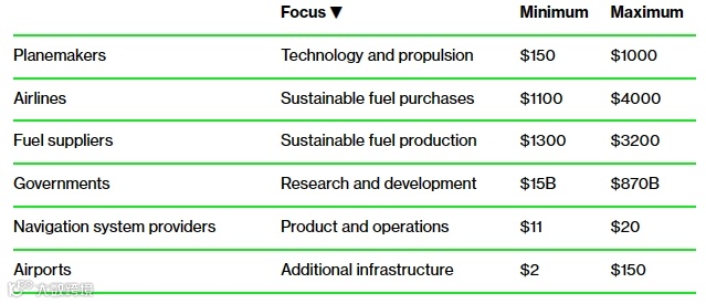 根据麦肯锡的说法,航空业要想实现碳中和的目标,可持续燃料生产和可再生能源发电部分大约需要5万美元的资本投资。而这笔钱,足以抵消全球航空公司收入近十年之久。