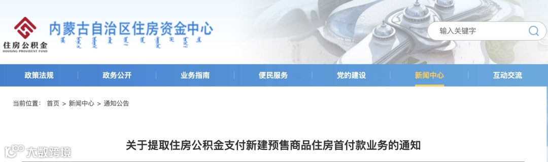 近期,内蒙古自治区住房资金中心发布了《关于提取住房公积金支付新建预售商品住房首付款业务的通知》,该《通知》自2024年9月23日起实施。