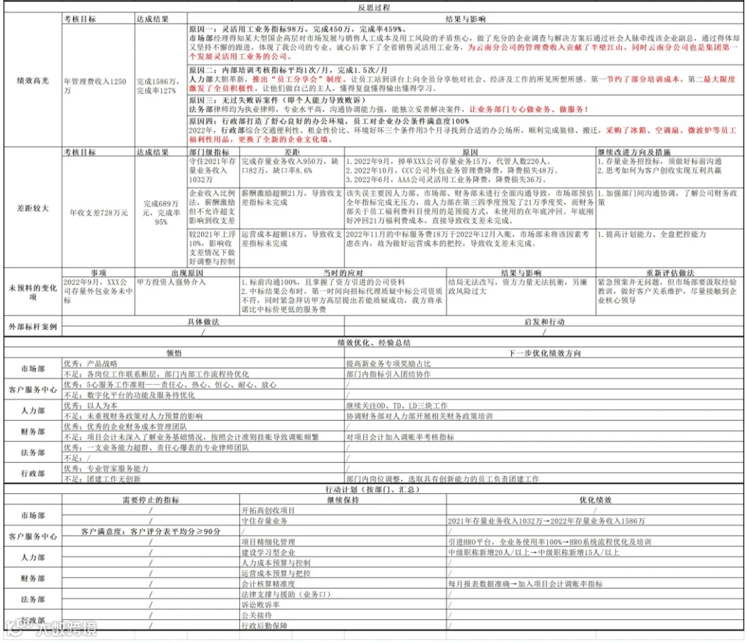 在学习和模拟的过程中,经过徐渤老师的指导下,学员结合企业实际情况完成了一次全方位的绩效复盘。
