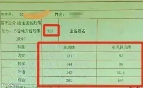 孩子的成绩只比之前的估分少一分,709分的高分显然足以敲开国内顶级高校的大门。