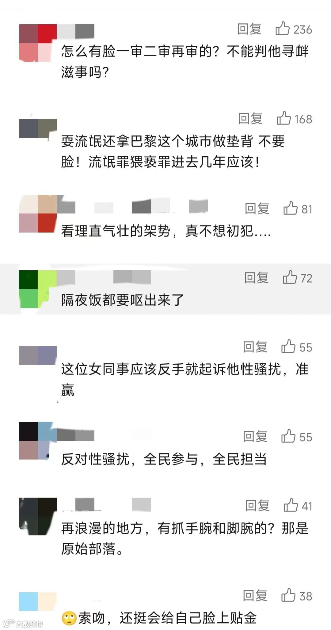 到了巴黎就觉得浪漫之都索吻正常,五千年的华夏文明也没把他熏陶成正人君子……这件事当时还没有社死那一说,事发十天后他被开除,他还敢仲裁、起诉公司,也是真的恬不知耻。