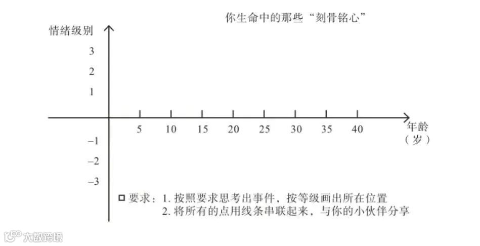 第一步:管理者给每位员工发一张白纸,让其在这张白纸上画一个轴,上面是正数,下面是负数,中间轴是员工从出生到今天的经历。