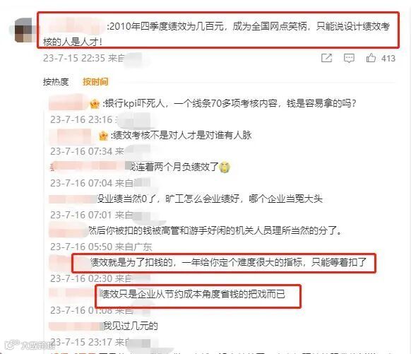 饶是这样,评论区依然炸锅,很多人把目光聚焦在银行薪酬绩效设计上,纷纷吐槽起绩效设计: