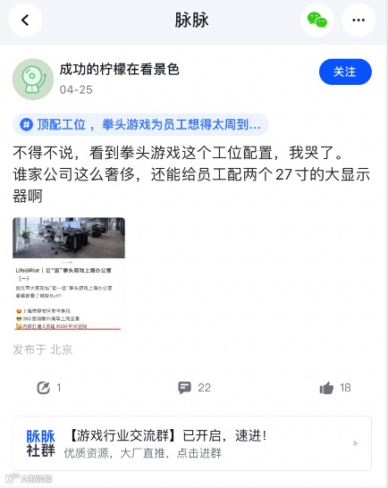 “标配工位=高配电脑+人体工学椅+两个 27 寸大屏显示器+升降桌”的拳头游戏