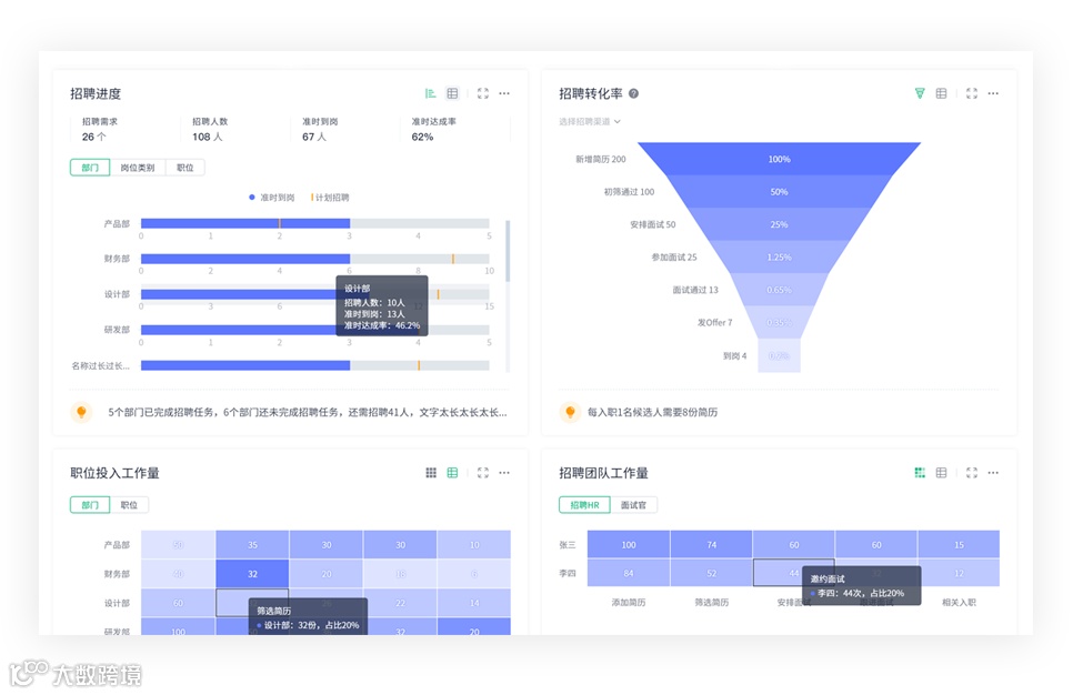 通过2号人事部的调薪分析,HR可以轻松查看企业的调薪总金额、调薪人次、调薪幅度等,还能了解到次均调薪金额及同比环比哦。这样一来,HR就可以较为直观的为老板呈现调薪数据,为老板的调薪决策作出参考啦~