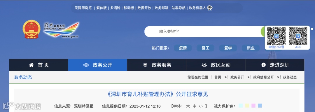 1月11日,深圳市卫生健康委公开征求《深圳市育儿补贴管理办法》意见。