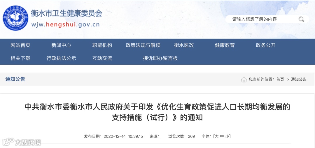2022年11月9日,河北衡水市委市政府印发了《衡水市优化生育政策促进人口长期均衡发展的支持措施》,该措施自2023年1月1日试行。