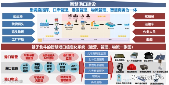 北斗+智慧港口解决方案借助北斗系统定位功能,利用室内外一体化的北斗高精度定位网络运营和高精度地图技术,构建高精度位置服务云平台,可提高港口生产管理信息化水平,提升安全保障和作业效率,为智慧港口建设提供重要技术支撑,有助于加快推动港口行业质量变革、效率变革、动力变革,促进港口高质量发展。