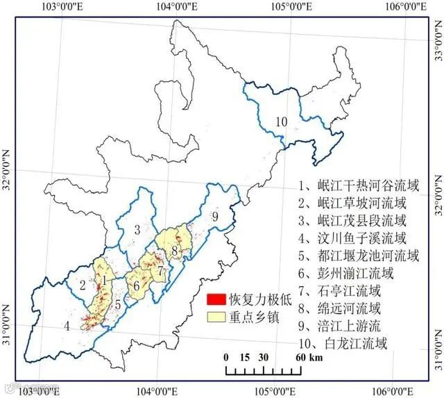 之前的是实际观测出来的,后面的则是根据观测的结果,利用各种生态模型最后推算出来的,有的地方超过50年才可以恢复,有的地方根本就恢复不了,必须得人为干预才能恢复。根据这样的图,我们可以倒推下一步防灾减灾的重点。没有恢复能力的地方和恢复的要大于50年的地区就是未来的防灾减灾的重点关注,根据这个可以看到在什么样的地区,面积多大,占受损面积的多少,这个图上可以一一做出来。