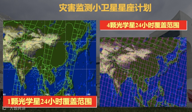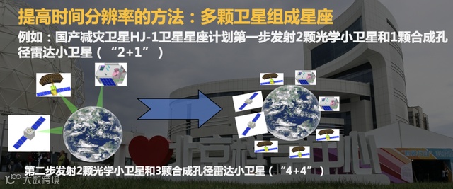 国产的减灾卫星的星座设计就是,第一步发2颗光学小卫星,还有一粒雷达星,2+1计划。第二步是发2颗光学星,3颗合成孔径雷达星,4+4计划,最后就是8颗星。这样时间分辨率就提高。