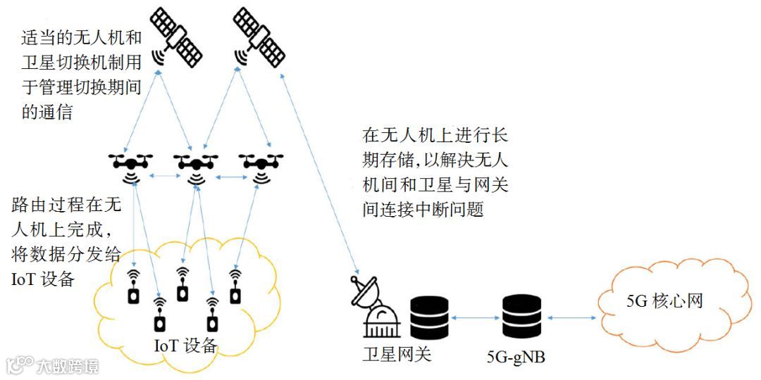 图7 IoT设备-UAV-卫星和5G体系架构