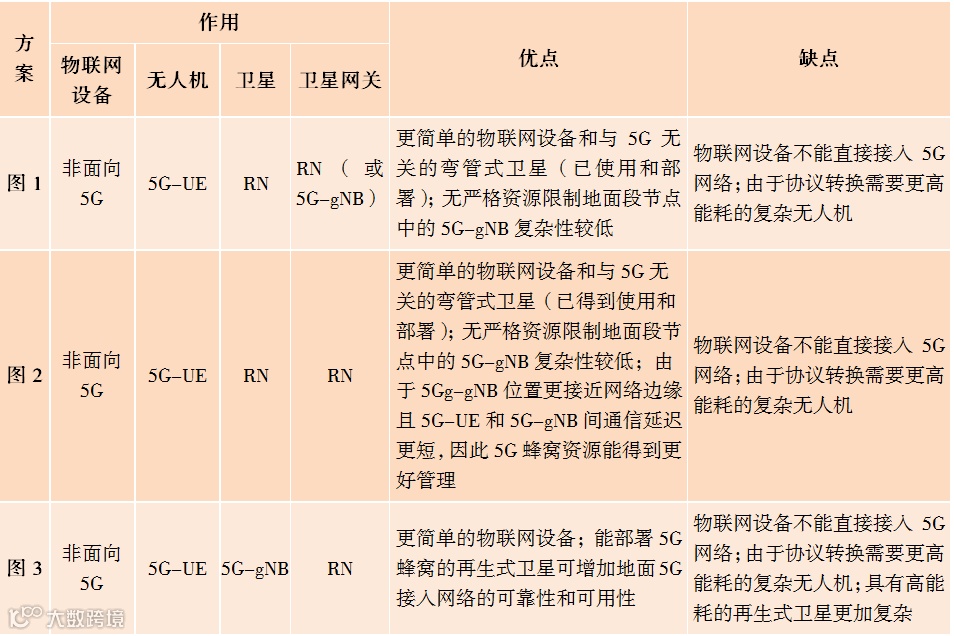 图1和图2所示的解决方案被认为是在5G框架下实现非地面和地面网络集成的第一步。这两种方案有优势,也带来了新挑战: