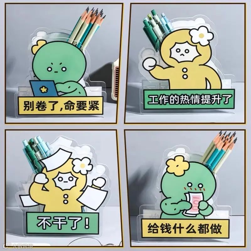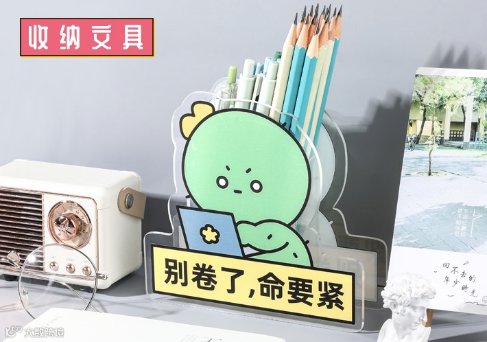 双面印刷图案,加厚亚克力材质,长、高14.5cm,超大容量能装约20支笔!多功能收纳,剪刀、发卡、眼镜等小物件都能放下。