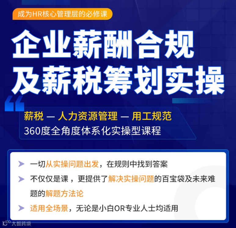 基于此,三茅联合了知名薪税专家、灵活用工专家徐阳老师打造了这套“企业薪酬合规以及薪税筹划实操”课程,让更多的HR规范用工,早日打通职场晋升之路。
