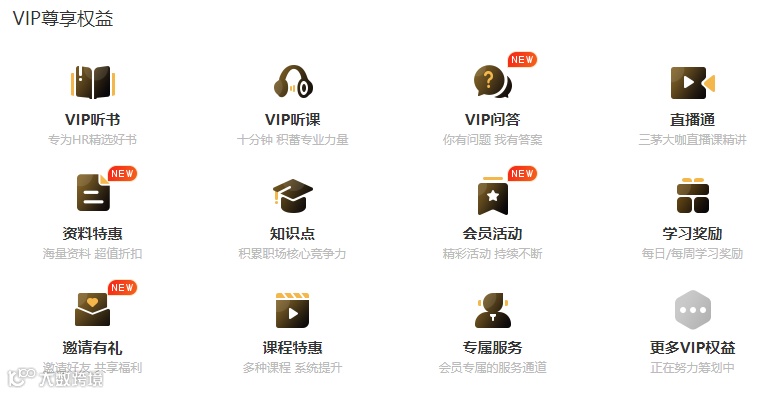 三茅会员上线至今,目前已有30000+HR学员,所依靠的出了听书之外,还有很多权益: