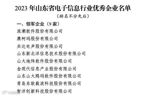 近日,2023山东省电子信息行业优秀企业名单正式公布,东软载波荣获2023山东省电子信息行业优秀企业领军企业称号!