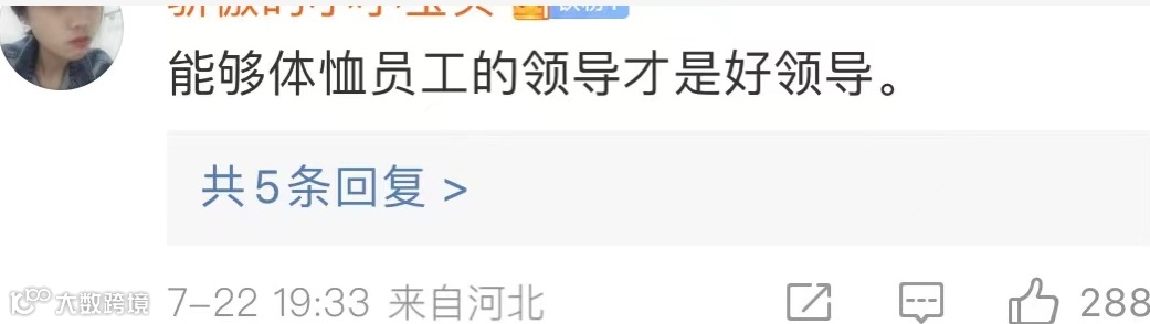 其实除了网友们的羡慕之声,我觉得更能深触人心的是这么一条回复:“这样的领导,只要是公司不倒闭,我能干一辈子!”