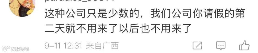 而相比之下,另一部分网友则感慨地吐槽:如果这事发生在我们公司,能扣钱准假都算不错,年终奖拿不到也属于正常,再或者弄不好,被开除也不是没有可能。