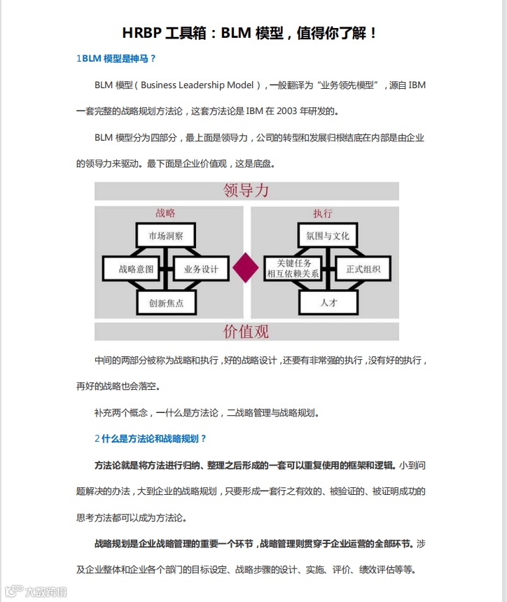 BLM模型——源自 IBM一套完整的战略规划方法论。