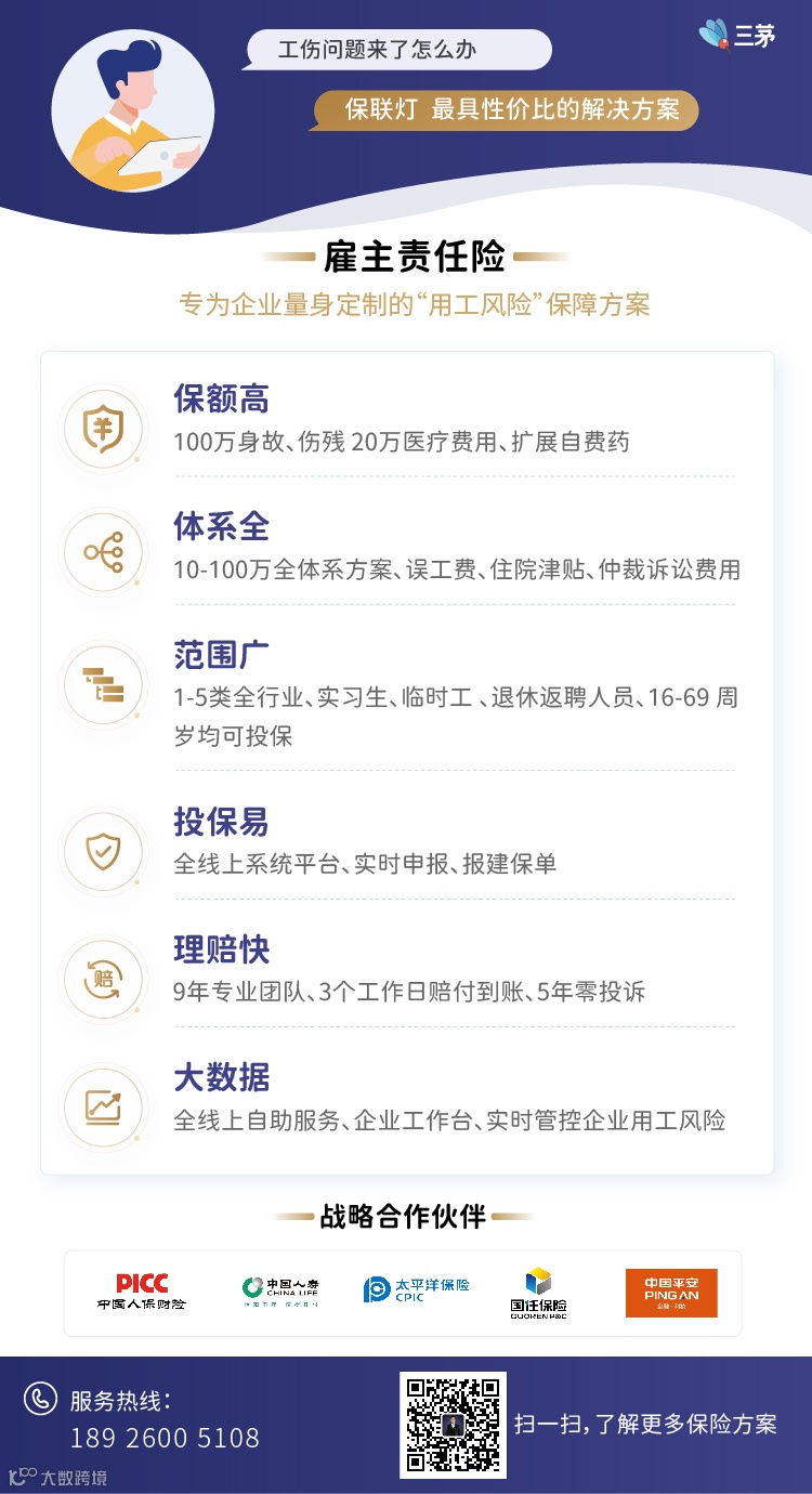 而对于雇主责任险等咨询服务,三茅人力资源网也已上线专业服务团队,为的就是让HR为企业提前打好基础,谋而后动,为企业解决难题,也能让自己在专业上更具核心竞争力。