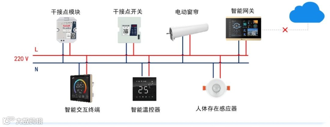 传统有线通讯方式如485、KNX、DALI等,供电和数据传输分别需要安装强电和弱电线进行支持,方案设计复杂,施工规模较大。在实际开槽布线中,不免对原建筑楼体造成一定程度破坏,并不适合耘熹酒店这样的古楼改造项目选用。