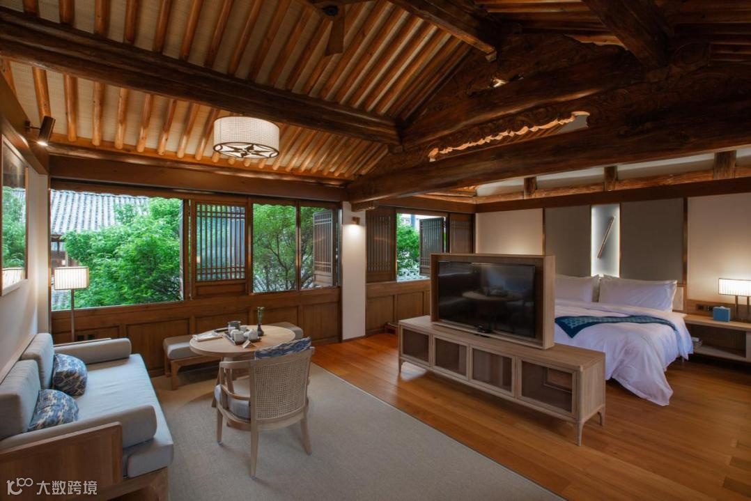 如此,通过智能化的照明调节,酒店客房内得以重现百年前烛火照明的效果。客人不仅可以尽览酒店古建筑风格的魅力,在客房下榻时,更能身临其境,仿佛自己真正穿越到百年前的府邸,沉浸式体验古人生活的闲情雅趣,见证埋藏在岁月重重交叠之下的沧海桑田。