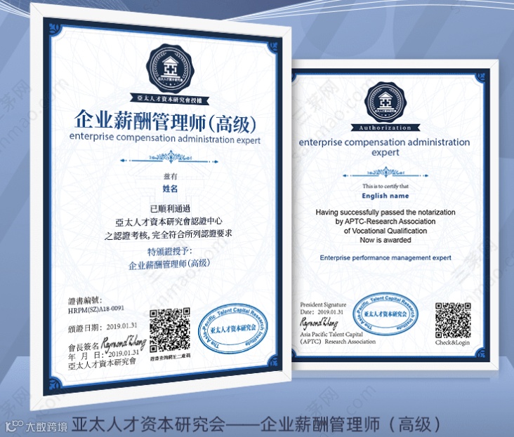 三茅会对同时满足课后作业及格和考试和格两个条件的学员,颁发具有行业百万HR认可的《企业薪酬管理师》+《企业绩效管理师》双证书。